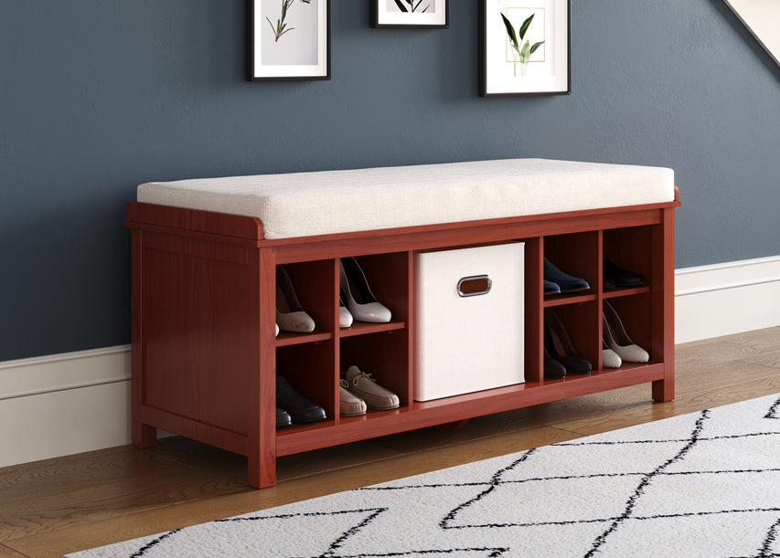 Tackle entryway chaos with the John Louis Home Solid Wood Entryway Shoe Bench. This bench provides a perfect blend of style and function, ensuring your home's first impression is a great one. It features a comfortable luxury foam cushion and a durable frame made from 100% real wood, designed to last for years.